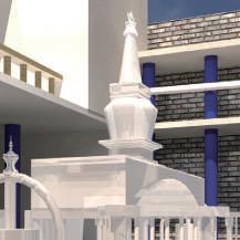 中庭增加了“白塔”装置,从入口进 入的人们将被现代艺术装置所吸引,成 为整个空间的第一个焦点。