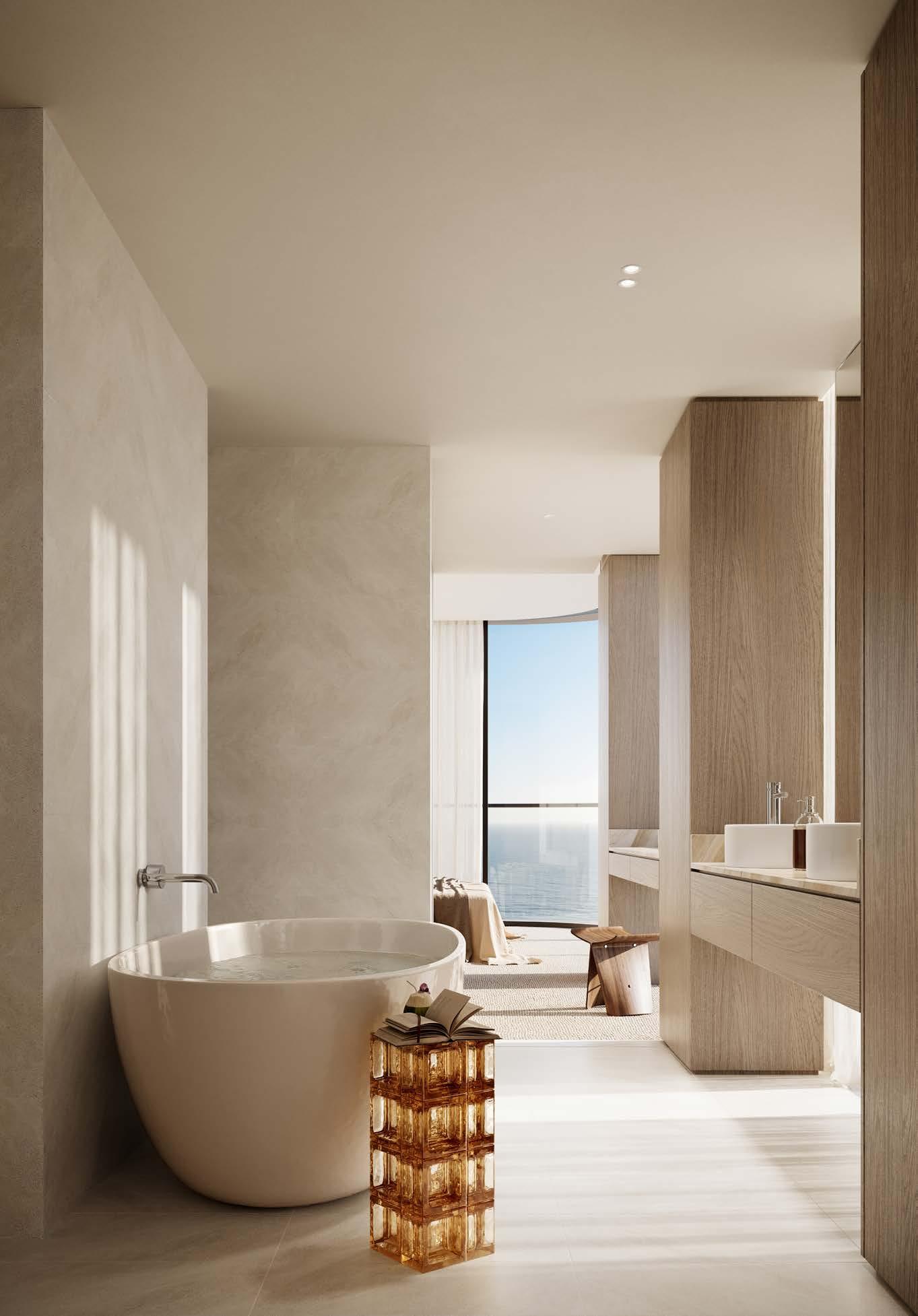 Defined by precision and poise, the bathrooms combine impeccable craftsmanship with globally inspired design. Bespoke fixtures, tactile materials, and a palette of enduring elegance transform everyday moments into rituals of quiet luxury.