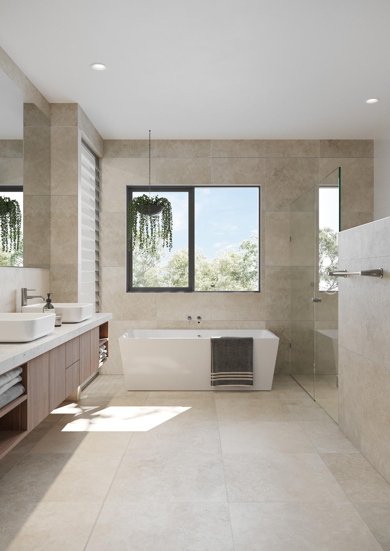 - Quality finishes including porcelain wall and floor tiles, stone benchtop, brushed nickel Villeroy & Boch tapware, and ceramic basin
