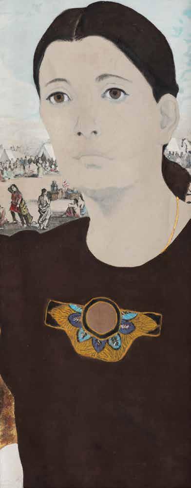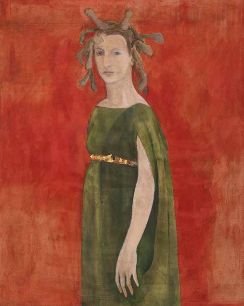 Long before Cindy Sherman’s beguiling photographs of herself dressed as different fictional characters and “types” in various modes of costume, Marcia Marcus painted selfportraits exploring ideas of identity, representation and selfhood. For years, she herself would be a perennial focus, whether costumed as Medusa or Athena, embracing her husband, or playing the role of the artist in the commissioned portraits of her friends and acquaintances. Marcus’s intentional ubiquity begs the question: how is it that we come to define ourselves? For Marcus, the answer seems to lie as much within images of herself as those that she paints of others. As critic Hilton Als reminds us, “Like dancers, none of us gets over that figure we see in the practice mirror: ourselves.”2