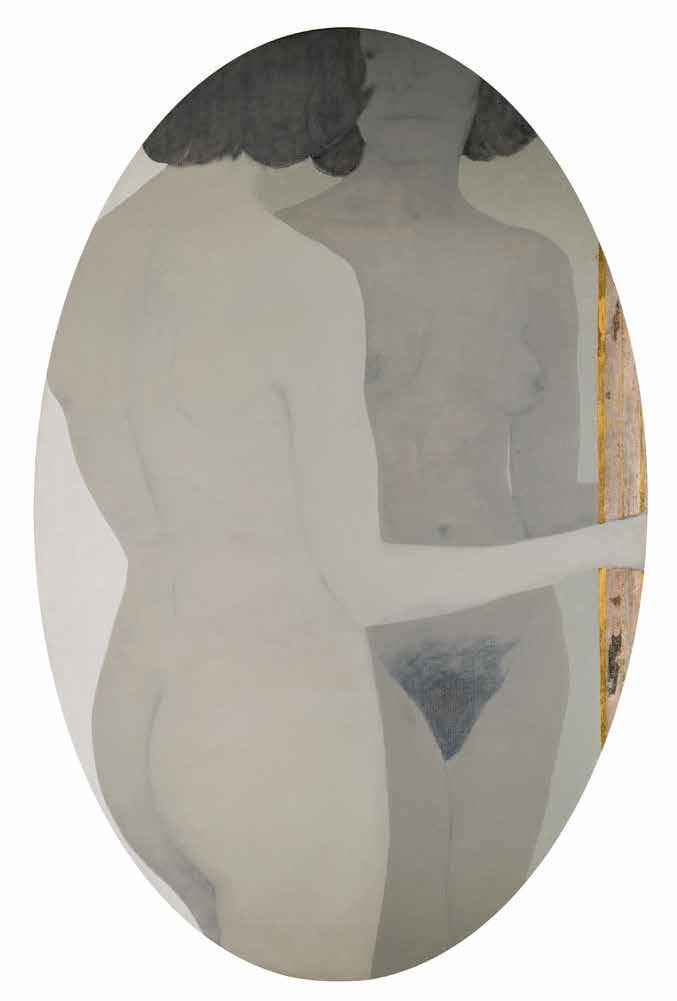 Nude with Mirror, 1965 oil and gold leaf on shaped canvas 47 1/2 x 30 1/2 inches