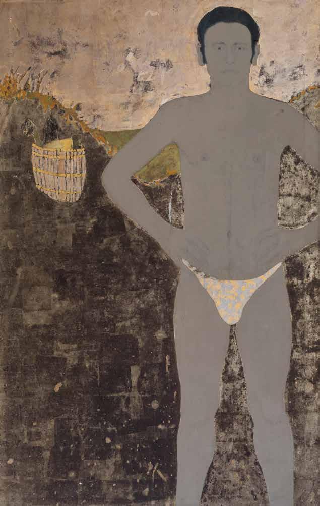 Self-Portrait with Tights, 1959 oil and collage on canvas