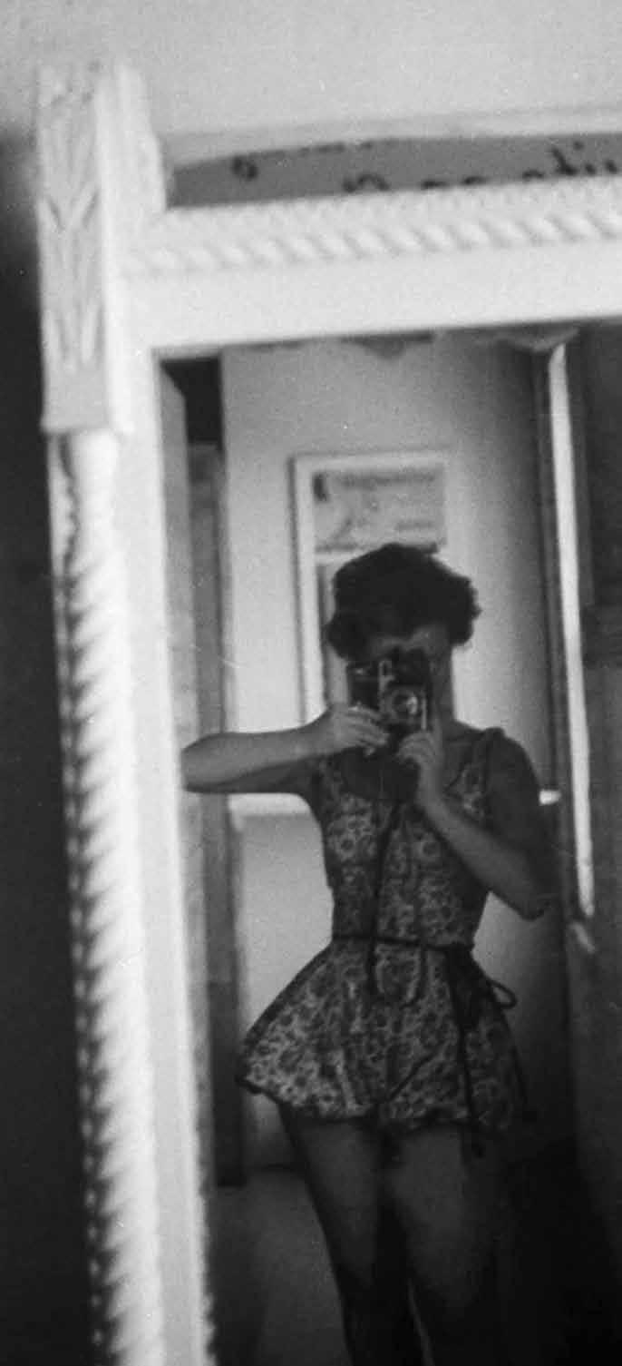 Yoking together Als’ suggestion of a constant, unfinished interrogation of self, and Marcus’s own insistence of the primacy of our gazes in ascertaining knowledge, we can see a choreography of making and unmaking, of looking and being looked upon, and of radical self construction and deconstruction. In Self Portrait with Tights 1959, (p. 19), for example, Marcus resembles a harlequin or dancer. Save for a mere turn of the face, Marcus’s body, clad in only a belted turtleneck and tights, appears frozen, as if gesturing forward. Yet, her eyes return the