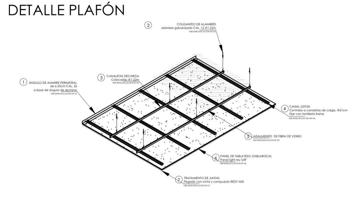 Proyecto ejecutivo Supervisión de obra Ejecución: Plafón ente ado P afón de fo aje artificia .
