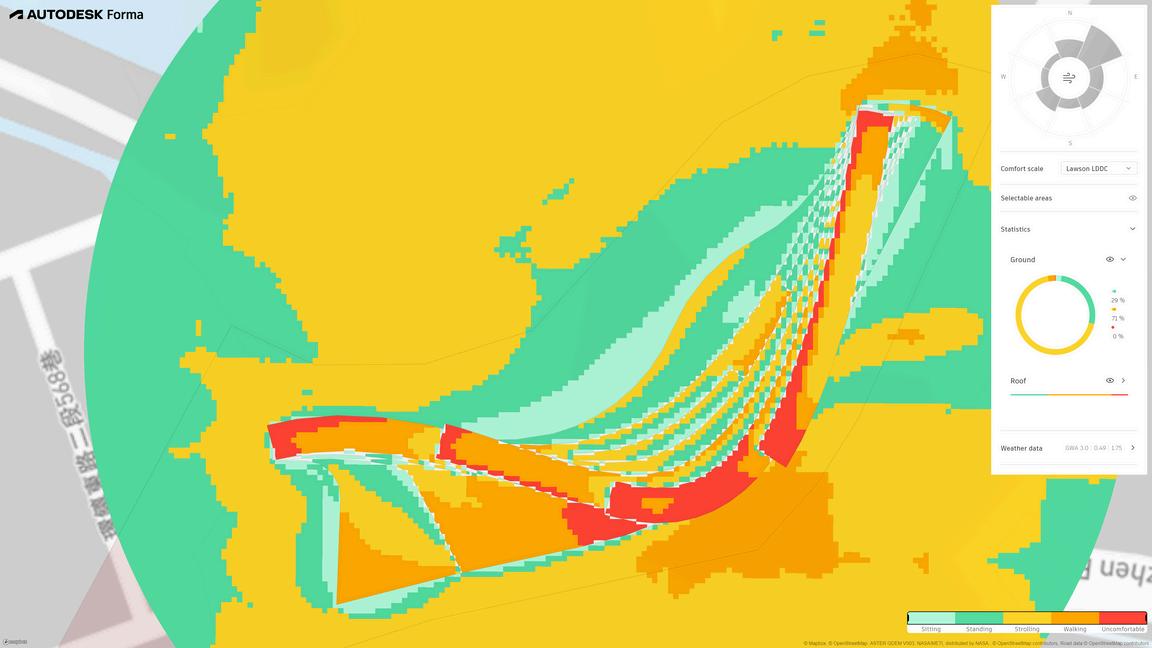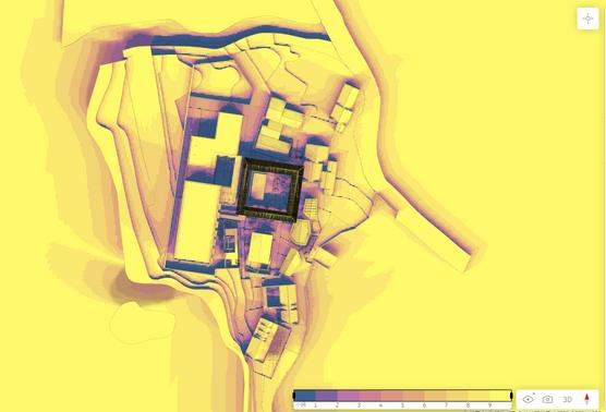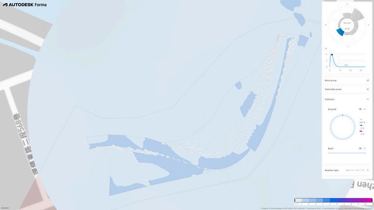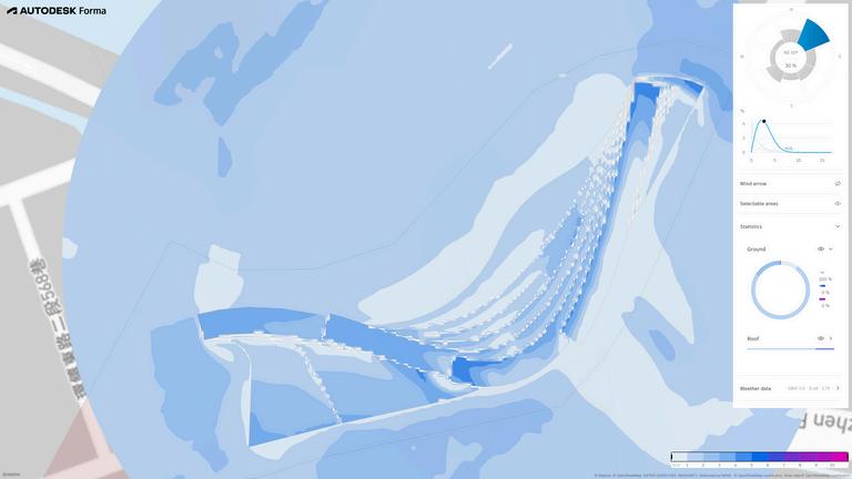 Based on the Forma Wind Analysis, it can be concluded that our building will experience strong winds on the roof, which could negatively affect visitors walking there To mitigate this issue, we designed the building with a landform shape that allows wind to flow naturally from the south and north without obstructing or negatively impacting visitors Additionally, we have placed the outdoor planets to avoid the effect on winds