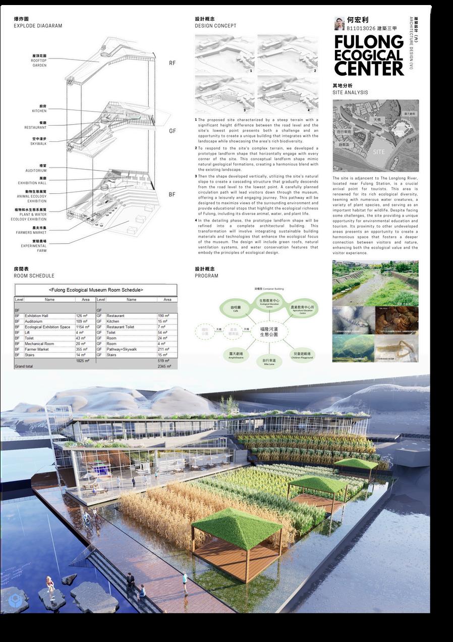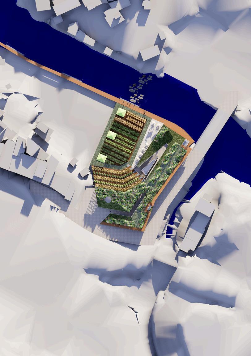 Based on the Forma Wind Analysis, it can be concluded that our building will experience strong winds on the roof, which could negatively affect visitors walking there To mitigate this issue, we designed the building with a landform shape that allows wind to flow naturally from the south and north without obstructing or negatively impacting visitors Additionally, we have placed numerous plants on the roof to help disperse the wind, while also aiding in the pollination process This design is in line with my concept of creating buildings that can blend with nature, by becoming part of nature itself, helping to reduce the Urban Heat Island effect.