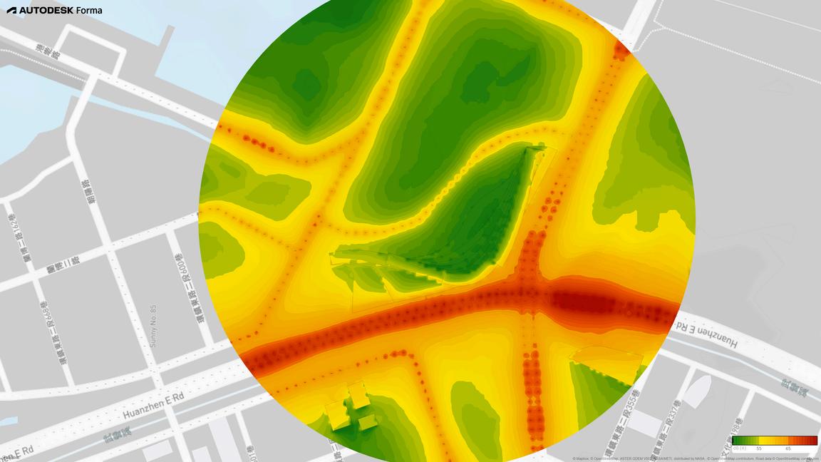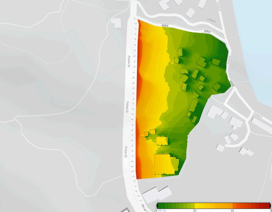 Based on the Forma Noise Analysis, The traffic on the coastal highway brings noise, so to address this impact, the site is set back a certain distance from the road, allowing the existing vegetation and trees to serve as a natural noise barrier The seafront side is used as the main access route With the Forma Noise Analysis, it is easy to understand how noise affects our site, enabling us to solve the problem effectively