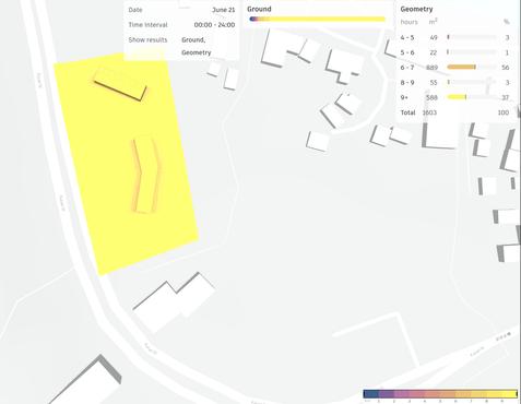 Based on the Forma Sun Hours Analysis, it can be concluded that our building will receive ample sunlight throughout the day. Since my building is designed to integrate the local residence and visitors of Maoao, I have decided to find out the location and direction of the whole to reduce light to enter and create sufficient space for people to rest during their journey This will provide visitors with a full experience that people willing to come to my restaurant