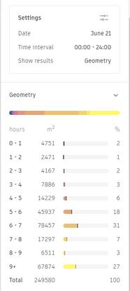 Forma sunshine hour analysis shows that our buildings receive ample sunlight throughout the dayTherefore I need to create more shade within my design to increase the comfort of my building, use corridors and planting to connect the buildings, and ensure that enough light is providedWe can also use daylight data to design the window opening positions of our buildings
