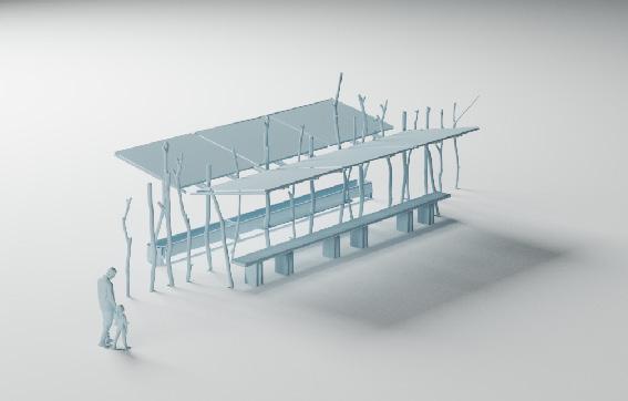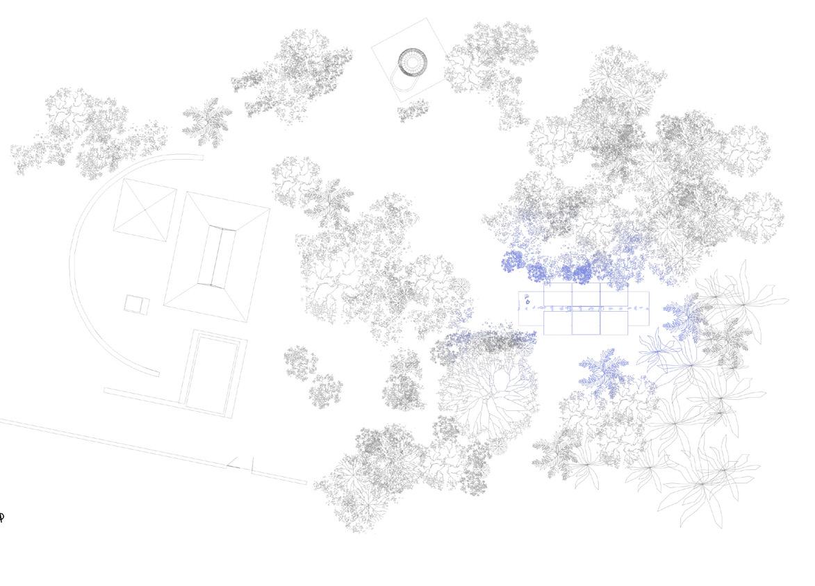 With the intention of generating a bridge between heaven and earth, in expectation of the rain, a roof is raised supported by trunks ornamented by orchids through which moisture flows, thus generating the conditions suitable for its cultivation in a cyclical development where the human being is part mixing with his nature by placing a long table that unites people with their environment.