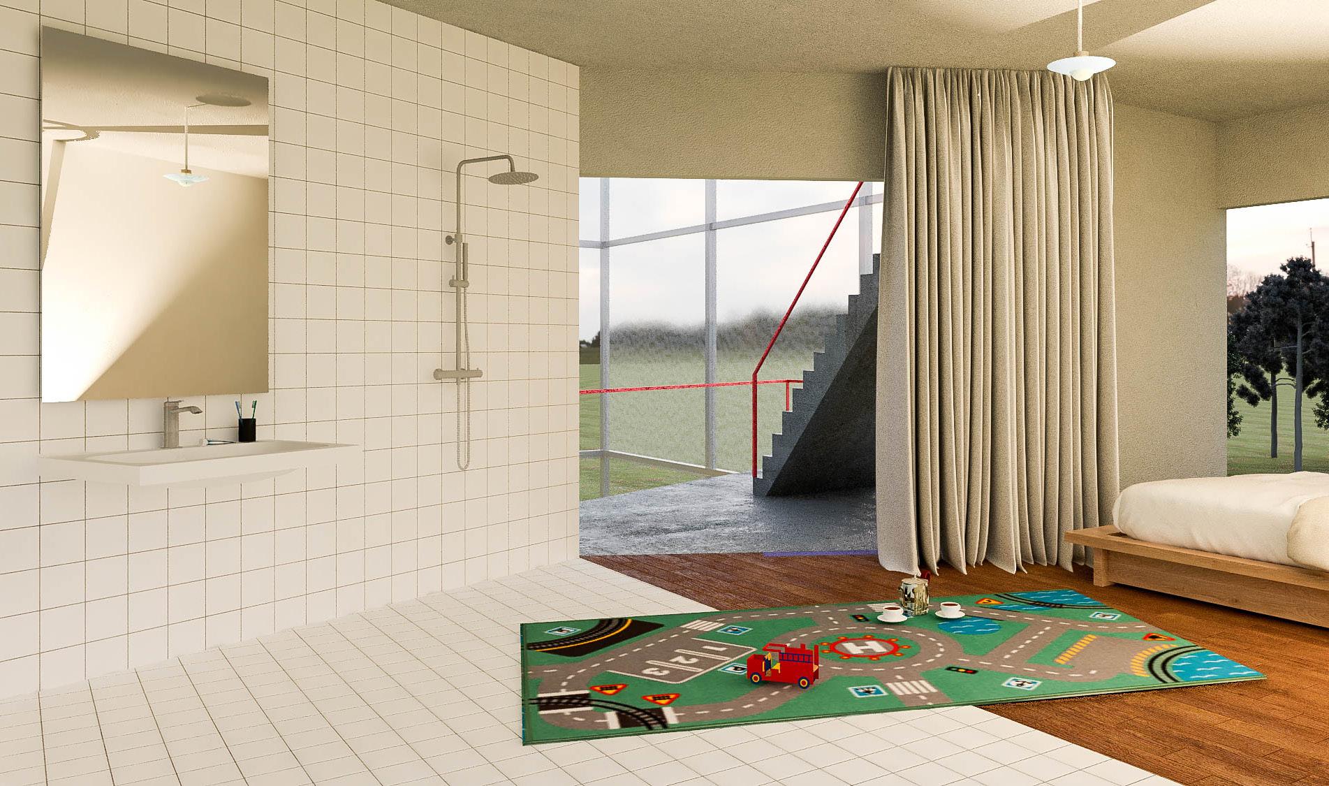 To integrate a repair approach to our children’s home project, we decided to dedicate a floor to the appropriation of the building by the young inhabitants. On the first floor of the existing building, common spaces allow children, teenagers and adults to rest, hang out, read, play or study. The idea is to create a collaborative project within the spaces on this floor. The walls were raised to create a more open floor plan, where spaces are open and communicate with each other. Two rooms offer more privacy for studying and resting, while a large space has been created laterally on the south side of the building. This floor is accessible to all age groups, from the youngest to the oldest, in order to promote diversity and respect among all. Mixing ages through an artistic repair approach aims to federate, to weave links between young people and with their space.
