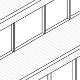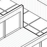 This site-less housing exploration, designed as a home for a defined group of five college students of similar ages, is divided into five vertical levels connected through a continuous stair on the north side. One of the main focuses of the design is to maximize square footage and the spatial experience for the clients, so the home is shaped like a compact tower with a footprint of only 240 sqf, and an expressive façade with protruding windows. These overhangs, which extend up to 2’ from the structural wall, either contain important elements of the program –such as beds, sitting space for dining, bathroom fixtures, etc.– or create special moments out of mundane activities by framing them into unique views and lighting conditions.