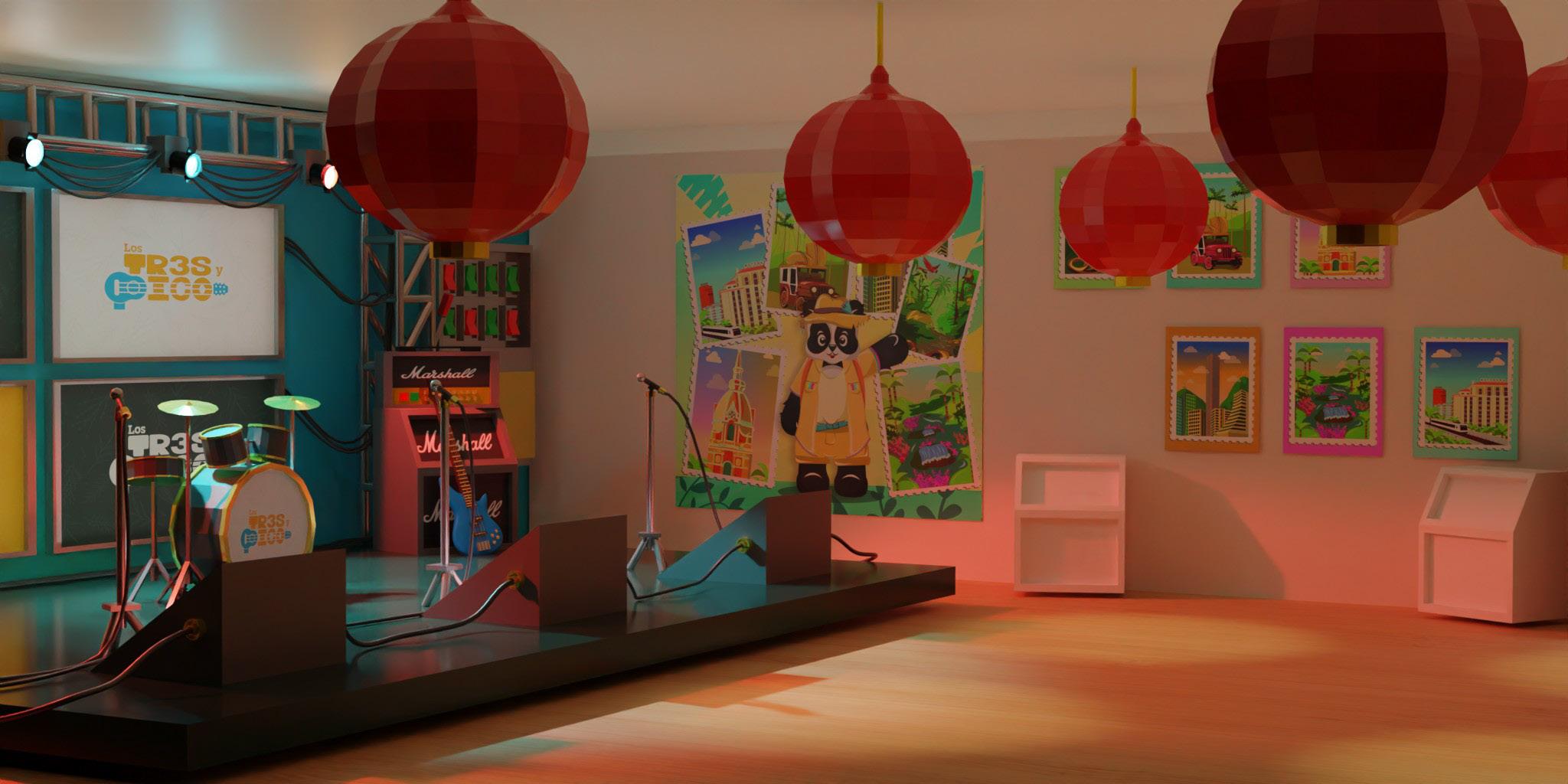 Escenario presentación y lanzamiento linea y productos los tr3s y pico, donde se realizo una union junto con la marca Oroquidia estando presentes en el lanzamiento y dando a conocer a exrangeros (ciudadanos chinos ) este ritmo musical.