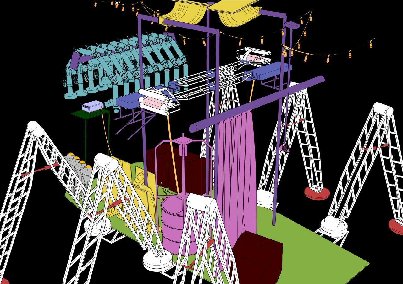 Design and fabrication work with CAKE architecture on the larger ‘Agnes’ stage for RALLY’s second festival. Time was spent in the workshop with set designers constructing demountable elements that would fit the scaffold structure, as well as during the install on-site.