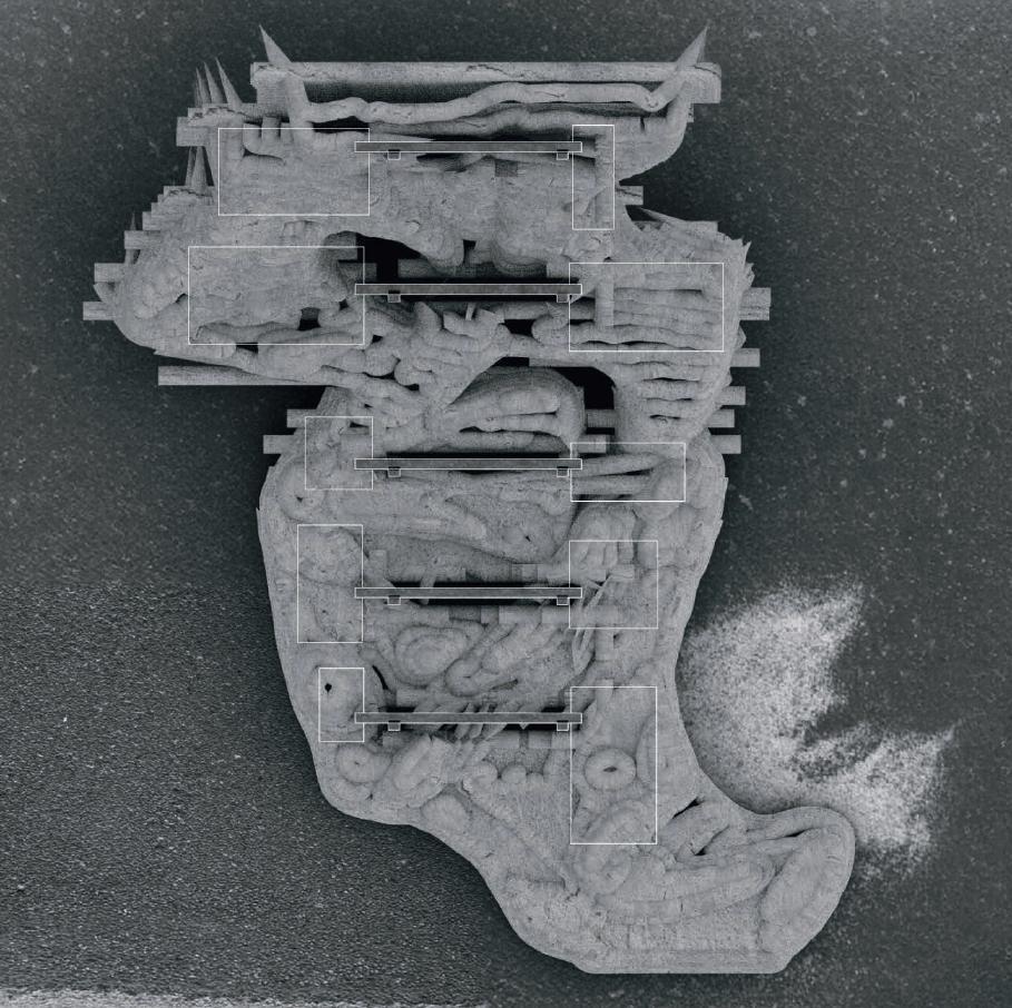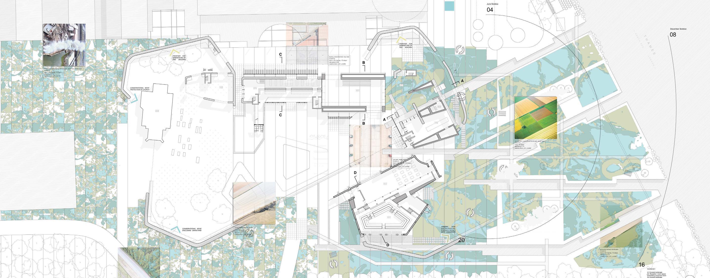 The proposal is a new city hall for an independent, self-governing Grays, where the local community gains stewardship of the landscape and engages in debate over the construction, conservation and rewilding of the Thames estuary. An empty political testbed is left following the council’s 2022 bankruptcy, allowing a post-scarcity economic system to be established, similar to Aaron Bastani’s concept of Fully Automated Luxury Communism. Situating itself between the Procter & Gamble soap factory and the 13th Century St Clement’s church, the city hall acts as a base point for resistance against further industrialisation, mediating the boundary between production and conservation.