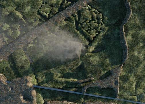 Three landscape treatments - rewilding, extraction, constructing of conservational barriers. The deployment of these around the town hall and the wider area would be discussed within the debate chamber. They are shown separately as a human-made base ‘palette’ and generative ‘continuations’.