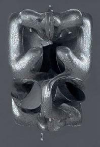 Extruded sandstone nateriality study - steel armature from defunct industrial equipment supports a computationally extruded sandstone form derived from AI generations