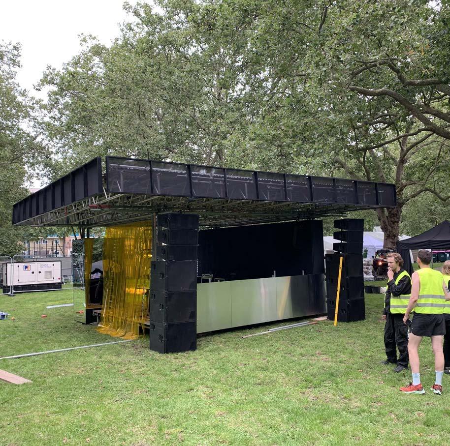 Work in the studio and workshop with CAKE architecture. Designing, fabricating and constructing Stage 3 for the first year of RALLY festival, an independent festival in Southwark park, South London.