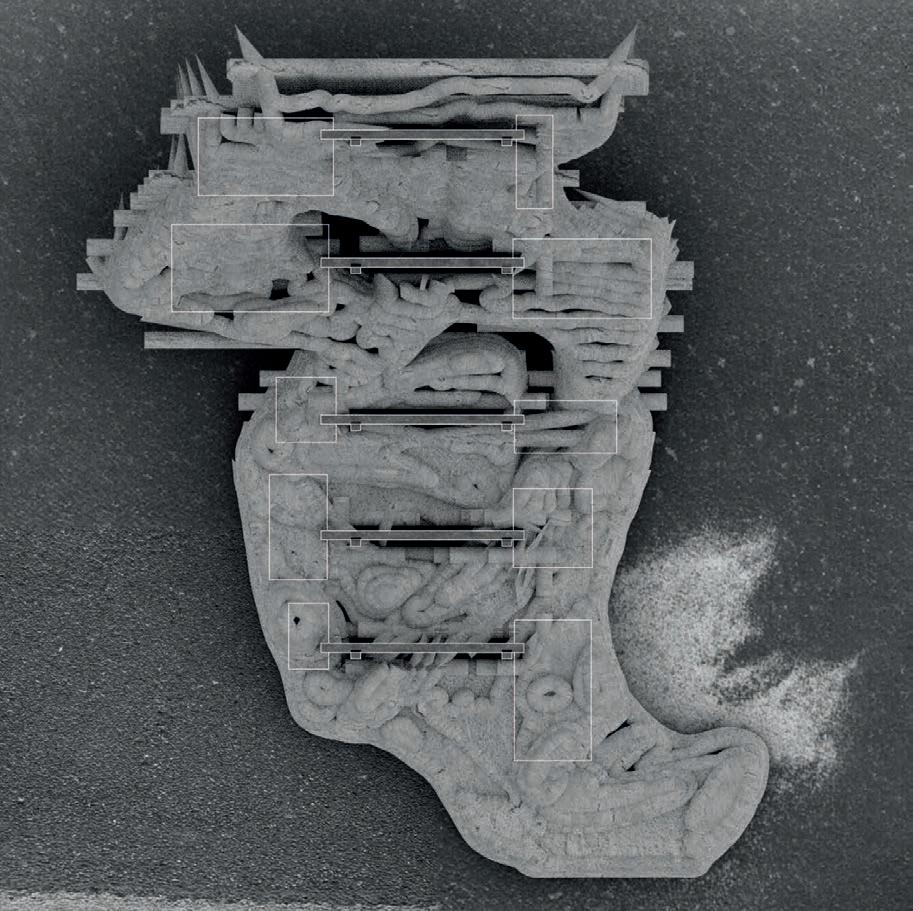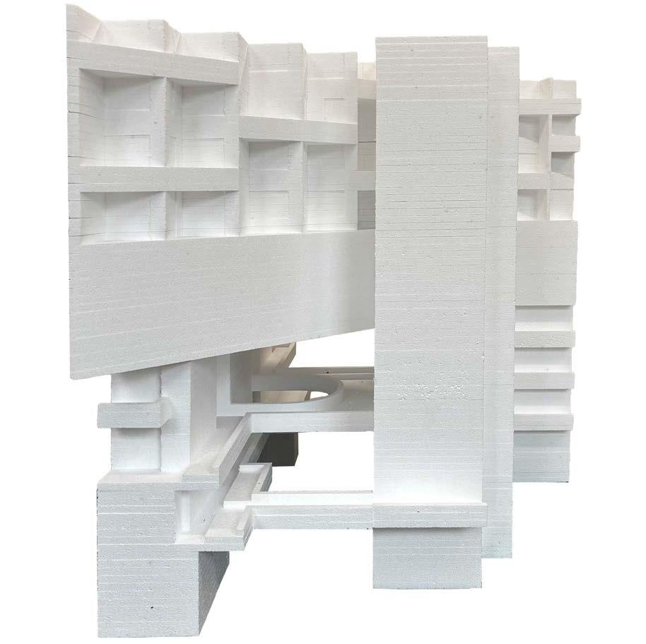 Through feedback loops fed by surveillance of the behaviour of these disparate classes, the AI spatialises this (existing) divide, creating logistical highways for the automated movement of goods that subdivide the town. Through critical collaboration with AI technology by building around these algorithmically generated fragments, uncomfortable and irrational spaces are rationalised by the human touch.