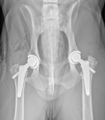 Stifle: total stifle replacement in dogs was introduced from Biomedtrix almost 20 years ago. There appears to be far fewer cases for knee replacement in dogs than in people. Most dogs with stifle OA are secondary to cruciate ligament disease and amenable to TPLO for treatment vs. people that end of with bone-on-bone joints even with intact cruciate ligaments.