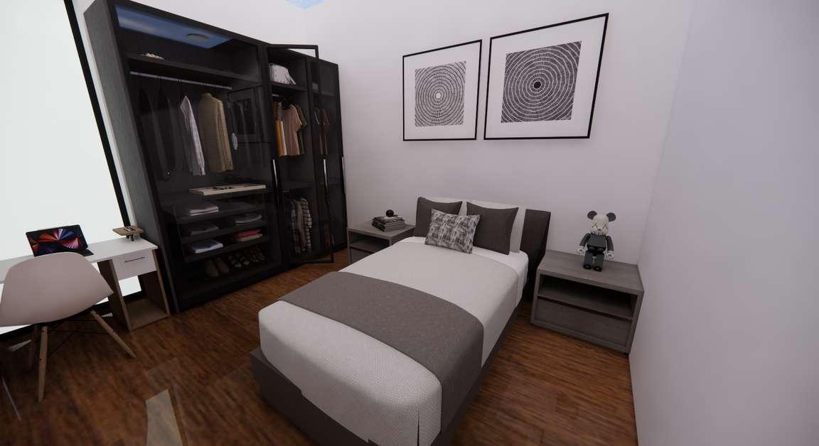 En colaboración con KOBAL se diseñó una torre de 3 pisos con un área total de construcción de 1,190m2. La primera planta contiene un amplio lobby, sala de usos múltiples, oficinas, gimnasio, lavandería y salón de computo, después las otras dos plantas constan de 32 departamentos por planta, habiendo 3 diferentes tipologías. La más pequeña de 60m2, la mediana de 85m2 y por último la extendida de 120m2.
