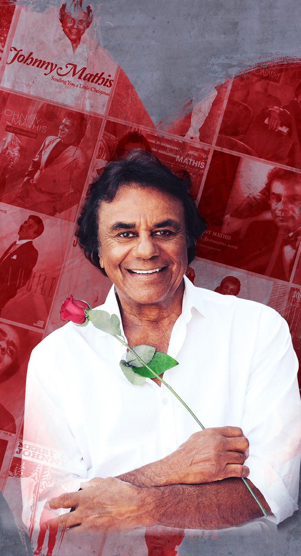 CELEBRATING ALMOST 70 YEARS AS A RECORDING ARTIST in the music industry, legendary singer Johnny Mathis is The Voice of Romance. A sublime vocalist whose approach to pop music eclipses passing fads and trends, Mathis has performed songs in an incredible variety of styles and categories -- from music composed for stage and film to golden era jazz standards, contemporary pop hits, and holiday music, all of which has assured his reputation as one of the most enduring vocalists in music history.