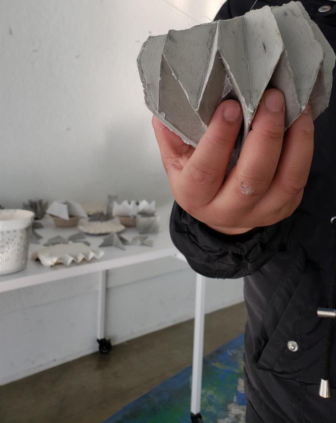 The hands-on portion of the workshop involved students creating single-use molds for Rockite casting to generate their own monumental forms. Students experimented with paper folding and the interplay of solid and void spaces to conceptualize and craft their own micro-monuments. I am particularly grateful for the collaborative support of Sara Timberlake and YT Oh, Michigan-Mellon Design Fellows, whose preparation and guidance in paper folding techniques helped students gain practical skills before the workshop even began. Their partnership made this workshop not only possible but deeply enriching for everyone involved.