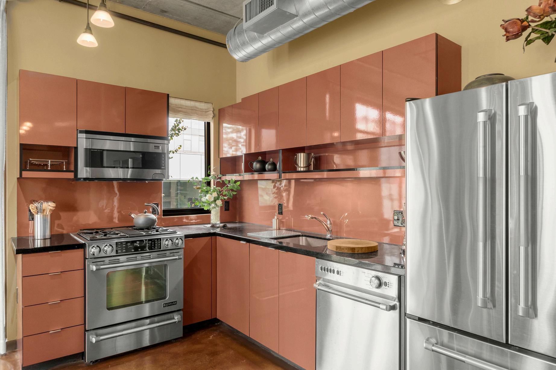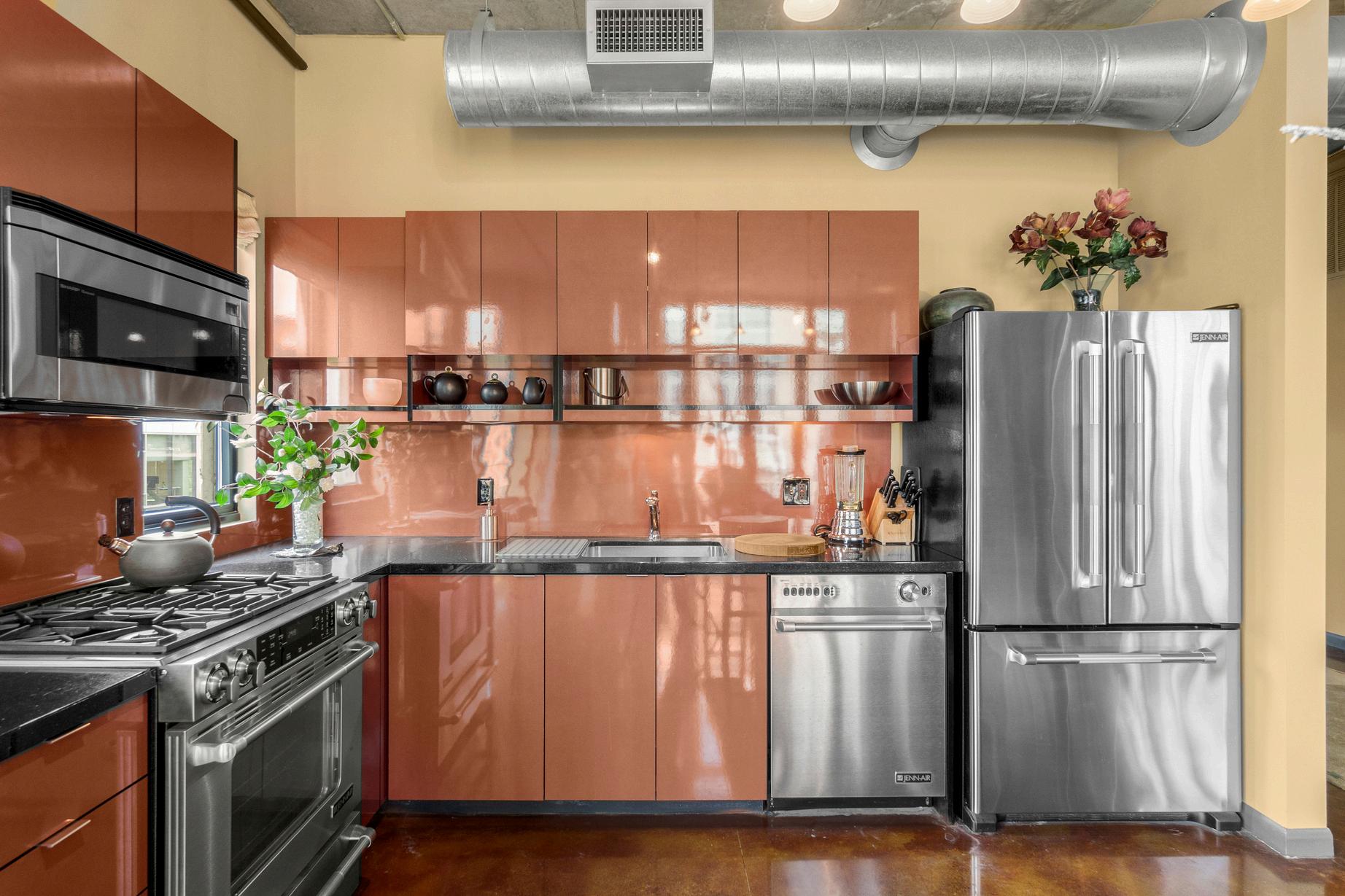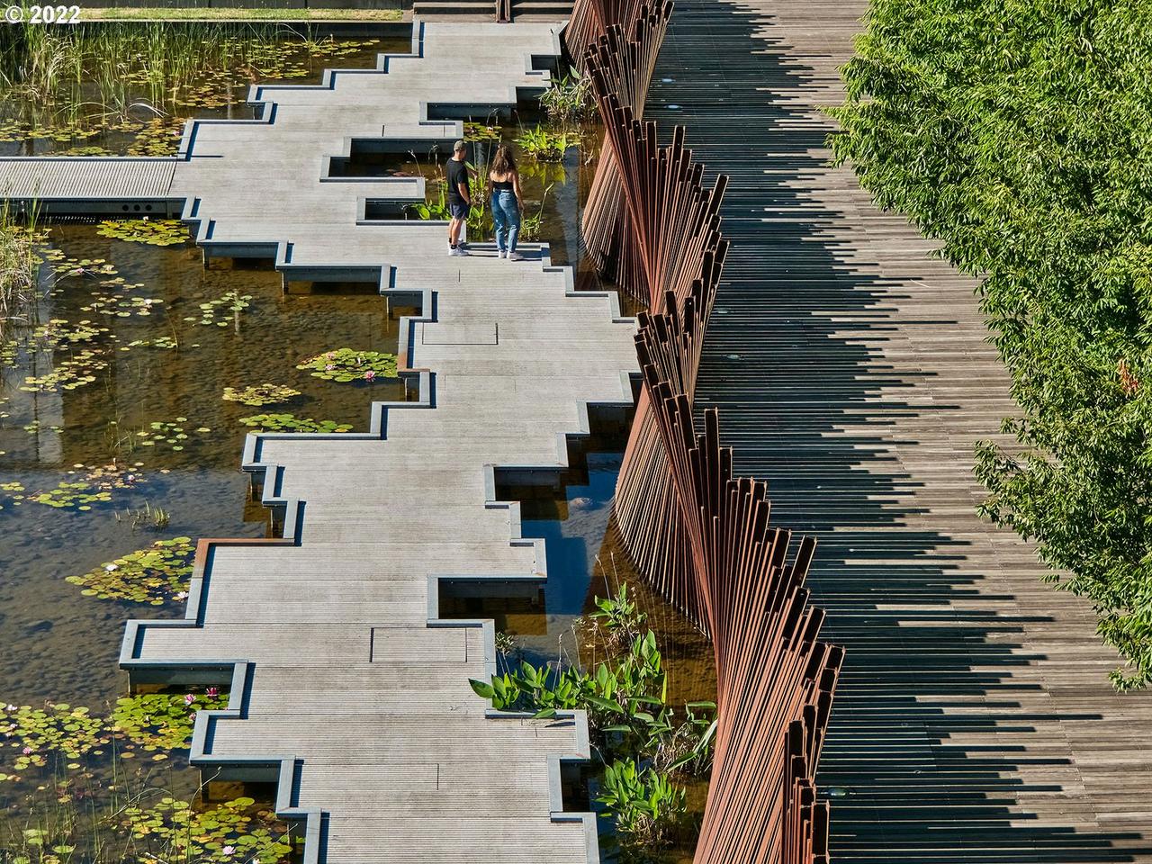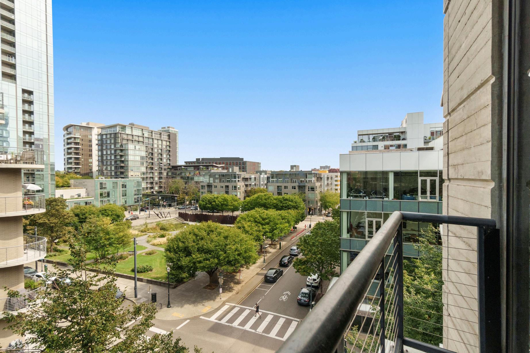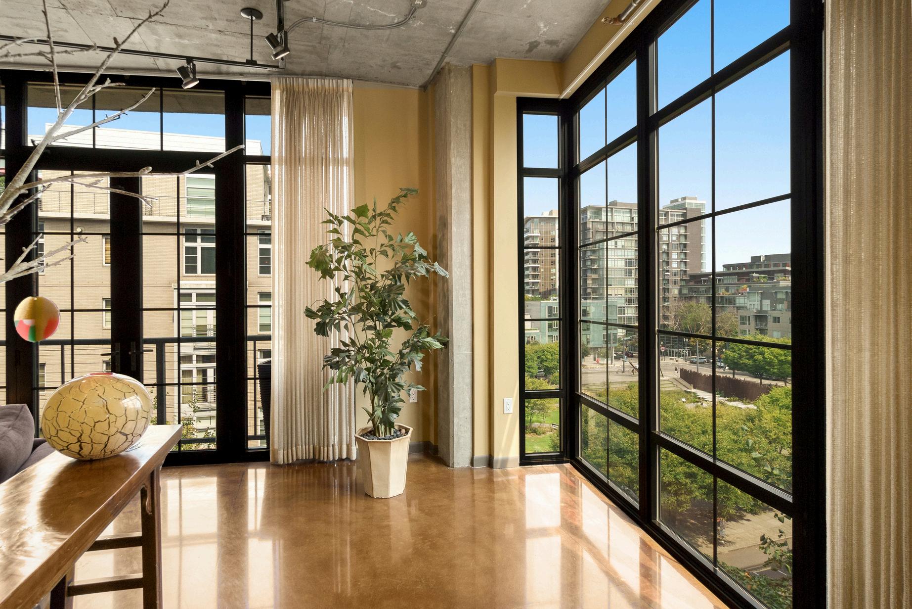 Harmonious design, natural elements, with expansive views of Tanner Springs Park and the city create a true opportunity for the discerning buyer. This corner two-bedroom loft residence blends open, airy rooms with thoughtfullydefinedspaces,offeringbotheleganceandfunction.Floor-to-ceilingwindowsfloodthehomewith natural light, framing inviting outlooks in every direction.Earthy tones and Zen-inspired details—such as a custom track lighting with Capiz shell fixture, stained and sealed concrete floors, and custom linen window encasements—bring warmth and texture, echoing the beauty of the adjacent eco-park. Dual European-style balconies with French doors extend from both the main living area and primary suite, connecting indoor comfort with fresh outdoor living.The floor plan features exceptional storage, including walk-in closets in both bedroomsandacovetedkitchenpantry.Anchoringthelivingroom,agasfireplacewithcustomsurroundadds both style and comfort. The chef’s kitchen includes a Jenn Air stainless appliance package, granite counters, and tailored cabinetry. Flexible in design, the spacious primary suite accommodates a lounge or office area, while the second bedroom easily fits a full or queen bed.Additional highlights include high ceilings, expansive closet organizers, specially designed shelving in the primary bath, two deeded parking spaces, and a samelevel storage unit.Streetcar Lofts, designed by award-winning architect Robert S. Leeb, is known for the iconic “Go By Streetcar” sign. Residents enjoy curated amenities including a two-level fitness room, landscaped courtyard, and private community room. Ideally positioned in the North Pearl, shopping, dining, and transportationarejuststepsaway.