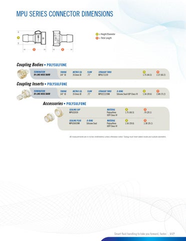Coupling Inserts • POLYSULFONE TERMINATION IN-LINE HOSE BARB