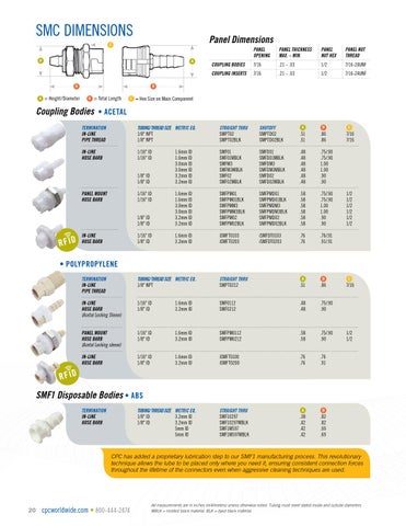 SMF1 Disposable Bodies • ABS TUBING/ THREAD SIZE 1/8" ID 1/8" ID