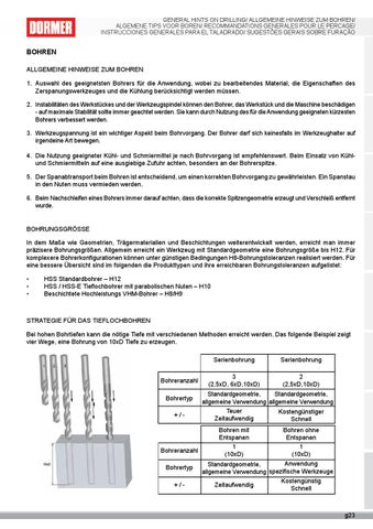 GENERAL HINTS ON DRILLING/ ALLGEMEINE HINWEISE ZUM BOHREN/ ALGEMENE TIPS VOOR BOREN/ RECOMMANDATIONS GENERALES POUR LE PERCAGE/ INSTRUCCIONES GENERALES PARA EL TALADRADO/ SUGESTÕES GERAIS SOBRE FURAÇÃO