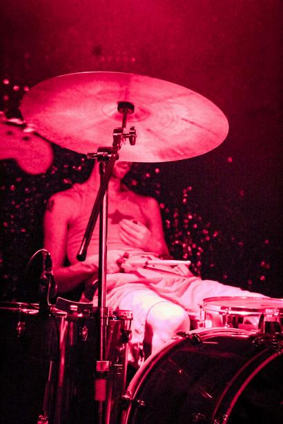 by the foursome. Onstage, Slater adorned sunglasses, his enthused head-bobbing throughout the set forcing said headwear into quiet calamity atop his nose bridge