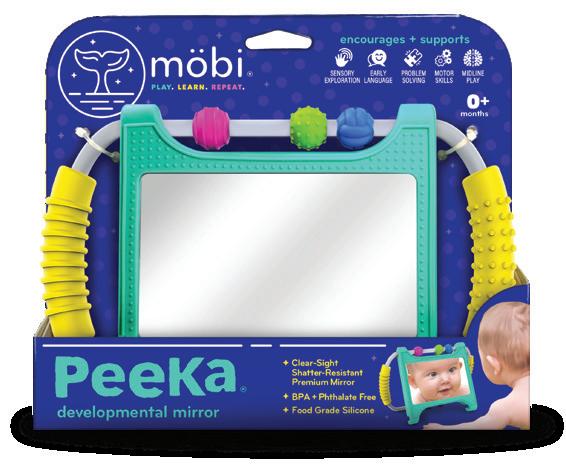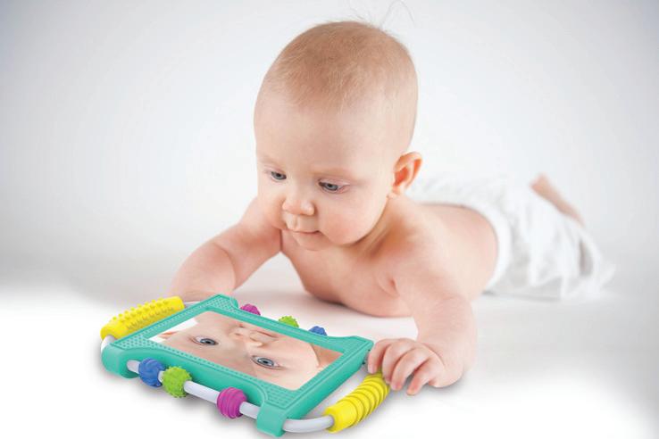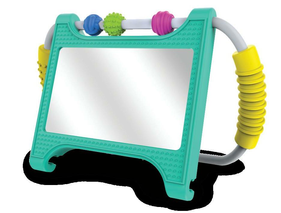 • Clear-Sight, Shatter-Resistant, Premium Mirror • BPA +Phthalate Free • Food Grade Silicone Item #: PKA1 UPC: 627843239772 Wholesale Price: $13.50 Suggested Retail Price: $26.99 Case Pack: 8 Units Minimum Order: 1 Case Pack Tummy Time Core Strength Head Control Clear Sight Mirror Cognitive Development Eye Contact Curiosity Focus MultiTexture Balls Midline Play Gross Motor Skills Fine Motor Skills MultiPosition Stand Can be positioned for tummy time or held by baby MultiTextured Handles Tactile stimulation Palmar grasp Safe and durable for teething Early Stages of Communication Smiling Babbling Facial Recognition 0+ months developmental mirror ®