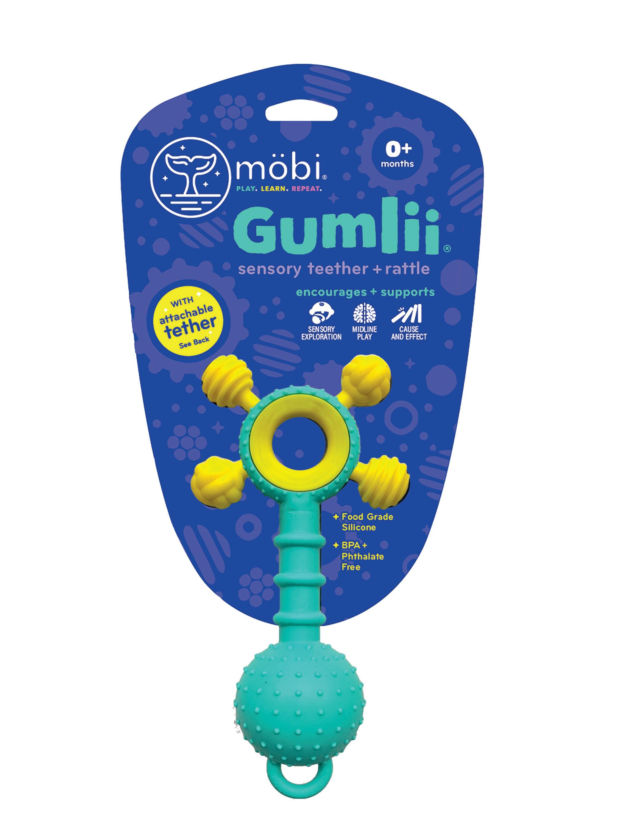 Item #: GUM1 UPC: 628011475039 Wholesale Price: Suggested Retail Price: Case Pack: 10 Units Minimum Order: 0+ months Lightweight, flexible and soft, Gumlii is the perfect teether for your little one. Made out of 100% food grade silicone, Gumlii is safe and non-toxic for your gumming child. Little fingers can’t resist: • Textured, chewy nubs • Easy-to-hold grip • Gentle rattle was developed by our team of doctors, therapists and parents to help children explore, learn and grow! • BPA + Phthalate Free • Food Grade Silicone sensory teether + rattle
