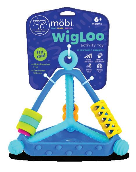 6+ months Wigloo® was inpsired by our little ones who love playing with bubble wrap, wedding rings and phone cords! We teamed up with doctors and therapists to create a fun and dynamic toy that is safe and playfully therapeutic. Little fingers can’t resist Wigloo®’s: • Silicone bubbles • Springy Cords • Spinning Rings • Multiple Sensory Textures • BPA + Phthalate Free • Food Grade Silicone Item #: WIG1 UPC: 627843239802 Wholesale Price: $13.50 Suggested Retail Price: $26.99 Case Pack: 8 Units Minimum Order: 1 Case Pack Wigloo® is a simple, multi-dimensional toy that was designed to grow with your children as they develop. ® acti vity t oy