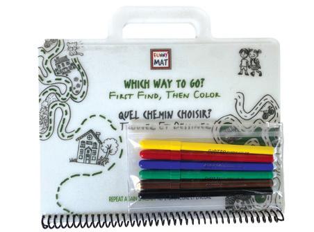 ¡Una actividad para colorear creativa, divertida y reutilizable en la forma de cuaderno en espiral portátil! Cada paquete contiene 6 hojas con una colección divertida de 5 diseños pre-imprimidos que pueden ser coloreados con plumones lavables como Giotto, Frixion Colors de Pilot o Crayola. Los colores se lavan con agua corriente o con una toalla mojada. ¡El paquete viene con un asa que facilita llevarlo de un lugar a otro haciéndolo indispensable para las actividades para el camino!