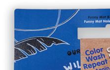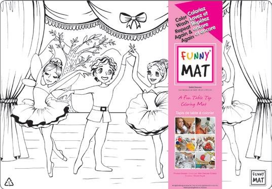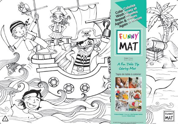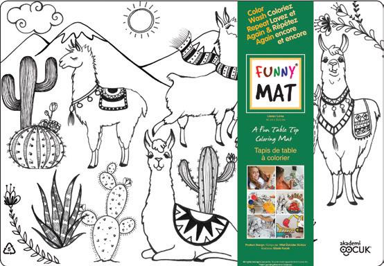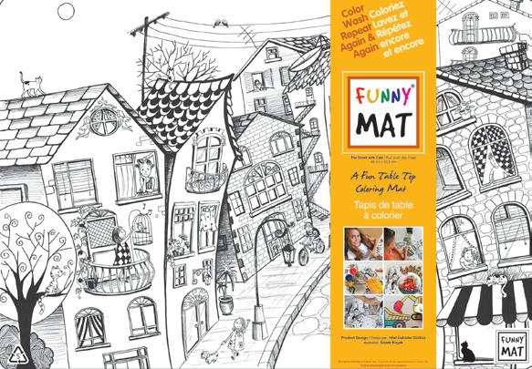 Funny Mat se puede usar para proyectos artesanales como para dibujar, o se puede usar como cubierta protectora de mesa para pintar, para jugar con plastilina o como mantel individual. Los diseños de Funny Mat pueden colorearse con plumones de punta de fieltro a base de agua, y también con plumones tipo Giotto, Frixion Colors de Pilot o Crayola. Funny Mat está hecho de polipropileno y es reciclable y reutilizable.