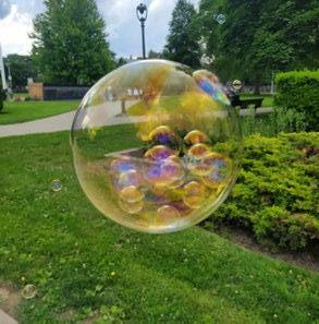 • Lots of bubbles every blow, long-lasting, fly far, and when cold enough, they freeze like a frozen orb