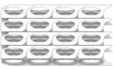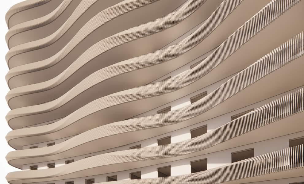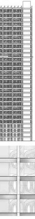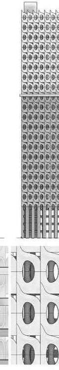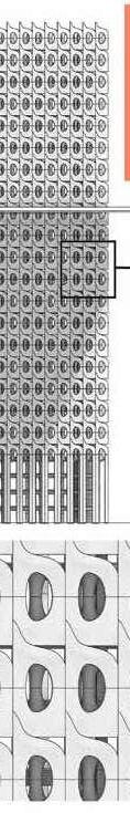 FACADE APPLICATION | In the application of the facade, the modules’ overall thickness was increased from it’s 3D printed prototype. The elevational dimensions were also decreased in height to allow for the facade to become a structural component. With a floor plate width within boundaries to be held by the structural facade, the building can be a true open floor plan and allow for only one side to be structurally bound. The module’s inherent depth also allows for optimal solar shading.