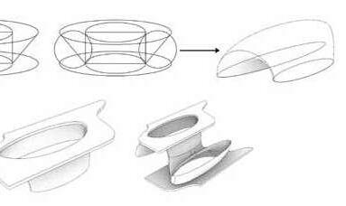 MODULE | The module was made by extruding basic shapes via a pattern analysis and taking consideration to emphasize the contrast of smooth skeletal bones with the a flat rigid plate. Both the smooth “bones” and the plate are used for connection to the next module; both equally important in the module and via different views, both used for different visual effect. The module is reflected and thus the facade can be shown the same on both sides but, breaking down the module into it’s un-reflected piece the facade becomes a dynamic piece with an abundance of visual variety, all with the same module.