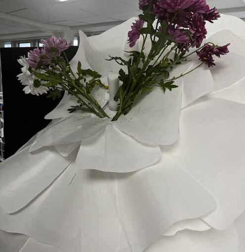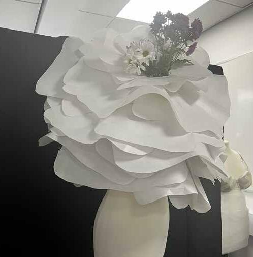 When struggling with my initial research or not feeling motivated I found it beneficial to physically create something. this coinsides with my creative personality and how I like to work physically and create something big. it helps get ideas out of my mind and allows me to further create a world in which my concepts can live in. it’s all part of my storyteller characteristics. The photos below depict 9th November’s procrastination, returning to my first-year project of paper dolls is where I found the first signs of my love of storytelling and creating conceptual art. The paper doll 2.0 is influenced by Baz Lurhmanns the secret life of flower film (h&M and ERDEM collaboration). cutting flower petals out, with no clear idea in mind: I just know that I needed something physically big on the mannequin. The petals took a Peony form on the mannequin.