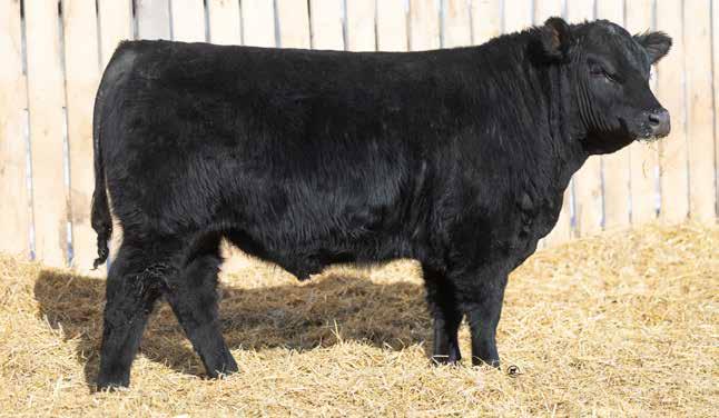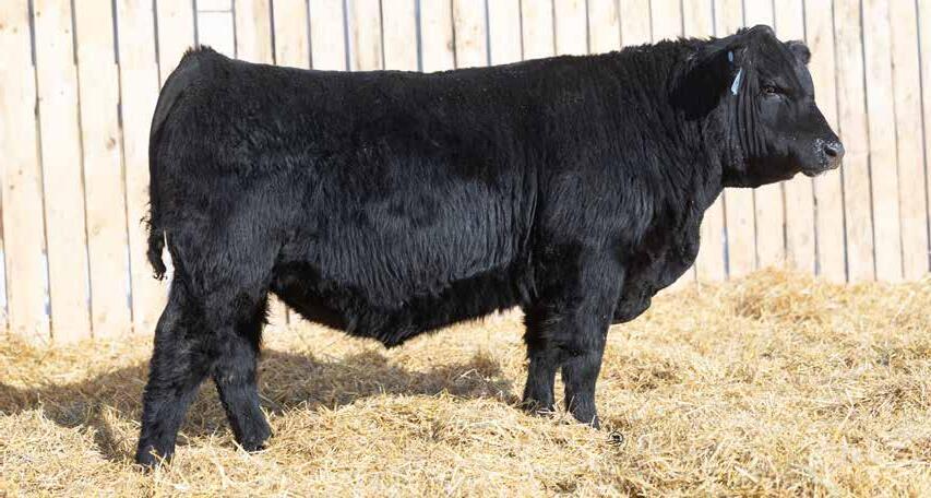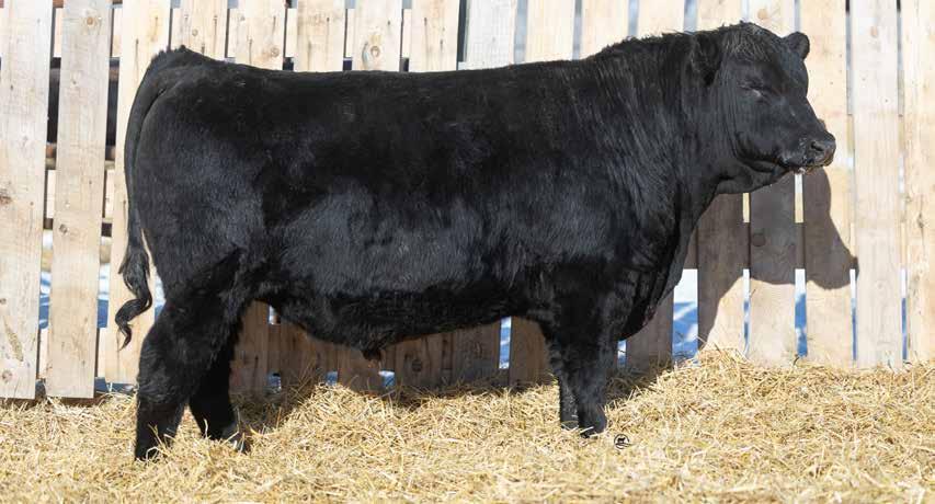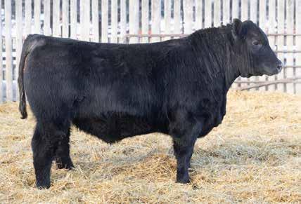 I was going through my pictures on my phone, and I had taken pictures of this guy right from the day he was born. He has been a standout right from the start. He is the longest bull in the pen with tremendous thickness and muscling that he carries down a long way. This is a hard one to part with. His sire was the 2023 National Black Angus Reserve 2-year-old bull, and his mother has been a top producer in the pen for a few years. Recommended for cows.