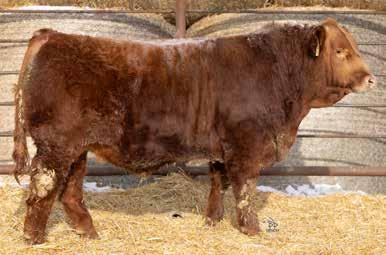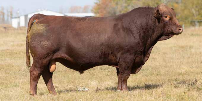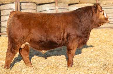 Running M Century Club 11N is a big strong red bull who has some incredible genes. His dam is a maternal sister to none other than MFR Dreamboat 6B the calving ease maternal sire. Bred to the exciting Wheatland Next century bull. A dark red homozygous polled herd bull who will breed consistently and powerfully in your program. Udder fixing genetics and one who is sound and quiet. • NON-DILUTER