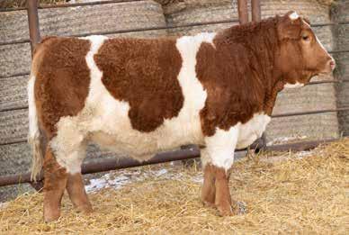 This group of Shorthorn sired heifers is a group we are quite proud of. The red heifer with white markings is sired by none other than Mosside Defender, who needs no introduction after his extremely successful show career and the great things he’s doing for the Ross’s. The two solid red heifers are sired by Apparition 2K who has also earned himself a few champion banners along the way. At the time of print, the first Apparition daughter has calved here, and she is milking well on a near perfect udder. These January heifers are hard to part with, they are out of some of our best Simmental commercial cows and I expect them to be every bit as productive as their dams.