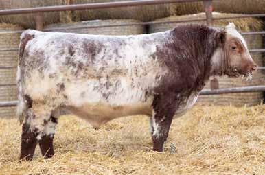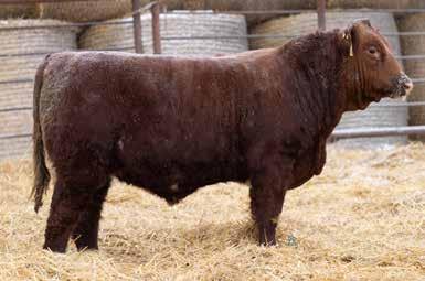 Another rugged growthy Pendleton son out of a Byland female by JSF Tonto. Docile, and out of a good milker, his Ribeye EPD puts him in the top 10% of the breed. There should be thick, muscular calves in his future!