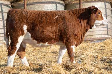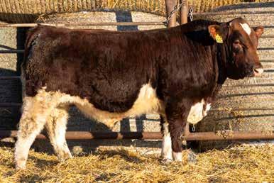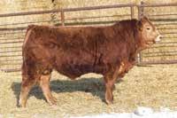 A polled bull out of a polled 4 yr old cow. A little shorter built with lots of middle to him. He is out of Bysantin same as 501 and his dam is out of the same cow as the 501. This bull is tie broke and very quiet to work with.