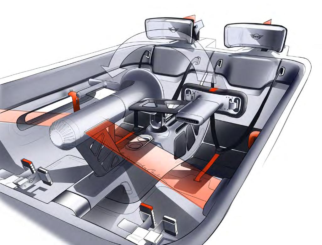 In the interior, I tried to achieve a digital, functional and future-oriented design. The so-called functional band houses all mechanical and digital control elements. This means that the display, switches or buttons can be replaced or renewed without, for example, changing or redesigning the entire dashboard or door panel. The interior of a rental car will be very worn out in a few years, the variability of the