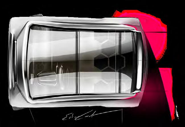 modern cityscape. An important factor in the design was the possibility to create derivatives. Both the exterior and the interior design are characterized by the fact that many elements such as headlights, cameras, displays can be redesigned or replaced without having to change large body parts or interior panels.