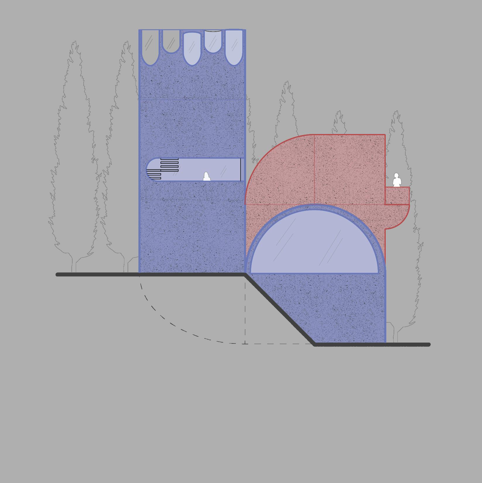 Inspired by the shape of an 8x10 camera, the Monocle is a structure made of concrete with large glass windows on three out of the four sides. The large windows allow natural light to enter the structure, with a focus on positioning them on the