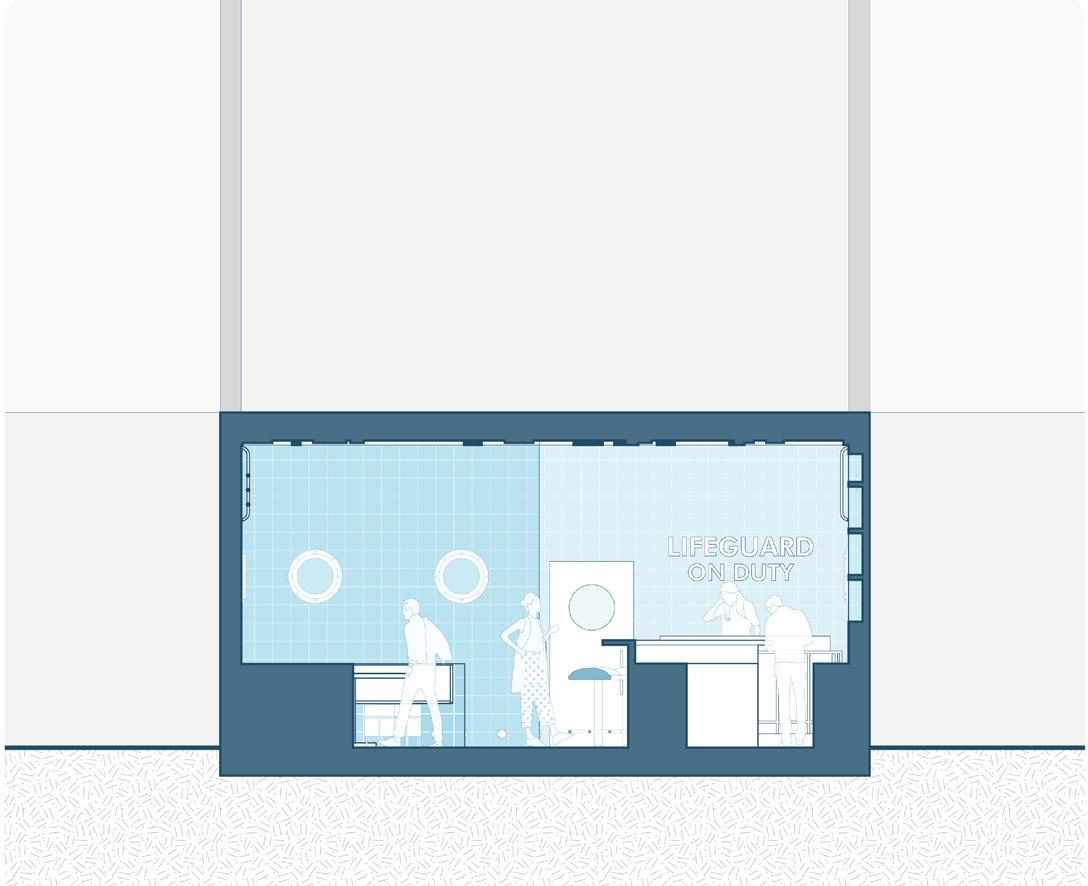 by or in the pool. Moving through the venue, you are surrounded by blue pool tiles, jacuzzi booths, diving bar high tops, and a swim up bar. The atmosphere of the bar changes as the night goes on, from an airy pool blue day, to a purple moody pool party at night. From the minute you step foot in our pool club, you will never want your “summer” to end. The electric mix of resident DJ, Horse Meat Disco, will leave you feeling like you’re on summer vacation year round.